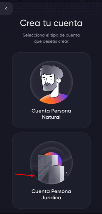 Selecciona la opción “Cuenta Persona Jurídica”.