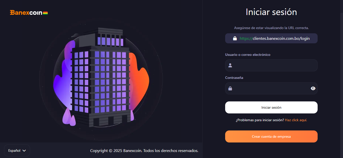 Diríjase al sitio oficial: https://banexcoin.com.bo/