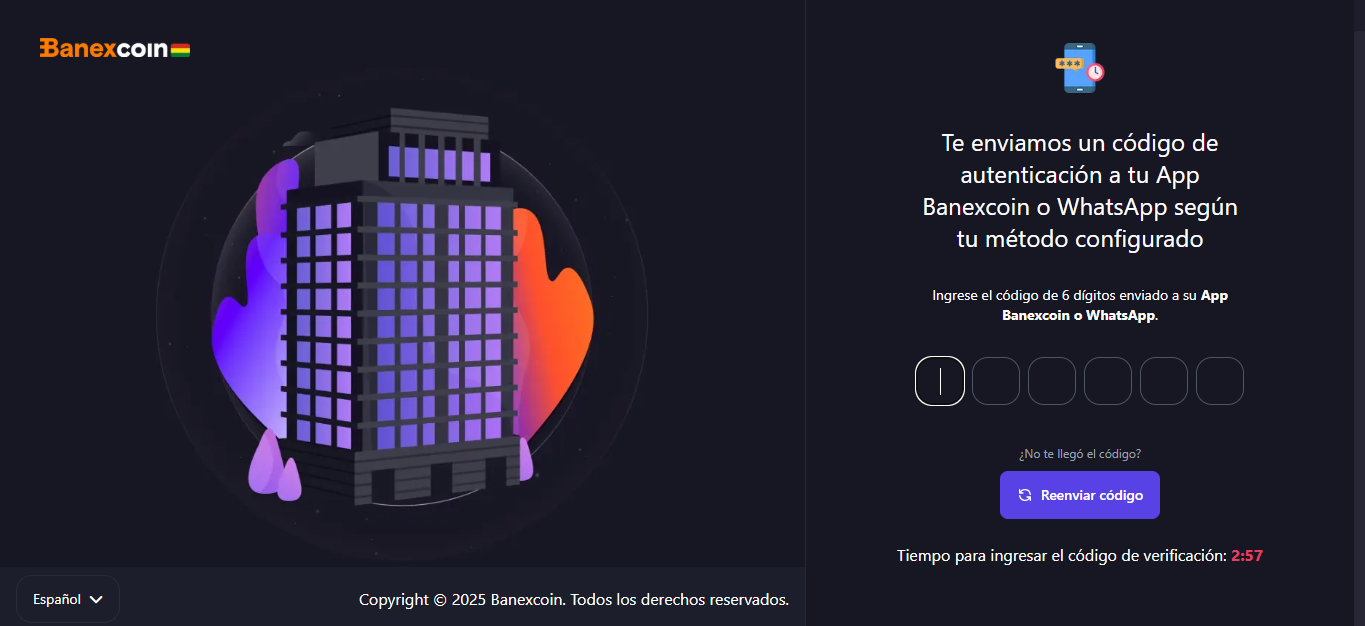 Si tiene activado el token digital, recibirá el código en su App Banexcoin o en WhatsApp, según lo que tenga configurado.